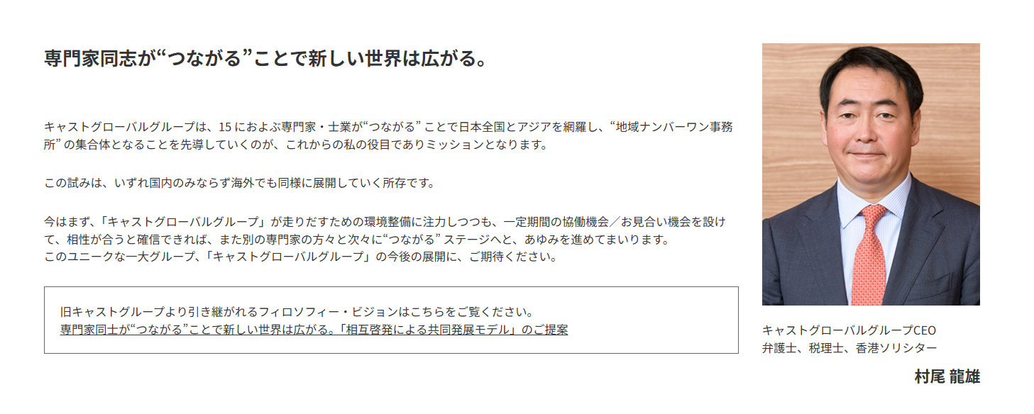 交渉の経過、詳細については後日記事をアップするつもりですが、実は、キャストグローバルグループのCEOである村尾龍雄弁護士(弁護士法人代表)自身が、会議中、突然「アホ! ボケ! クソ!」と怒鳴り散らし罵倒するという、驚き呆れる強烈なパワハラ体質。CEOがそんな調子ですから、当然の結果として、グループ全体にハラスメントを容認する空気が蔓延していると感じます。