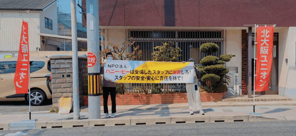 私たち北大阪ユニオンは、直接的には、組合員の受傷事故についての謝罪を求めているのですが、「防げたはずの事故」に象徴されるハニー・ビーのデタラメ運営の改善を求めています。