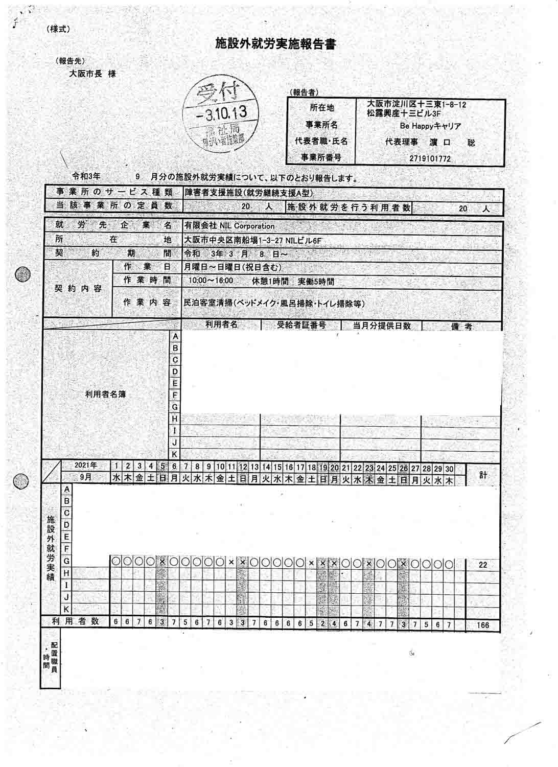 ちなみに、この「施設外就労実施報告書」は組合メンバーが自分たちで役所に開示請求して手に入れたものです。