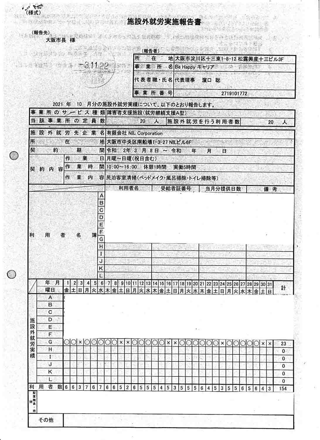 つまり、BeHappyキャリアはサービス提供実績を水増しして行政に請求していることになります。