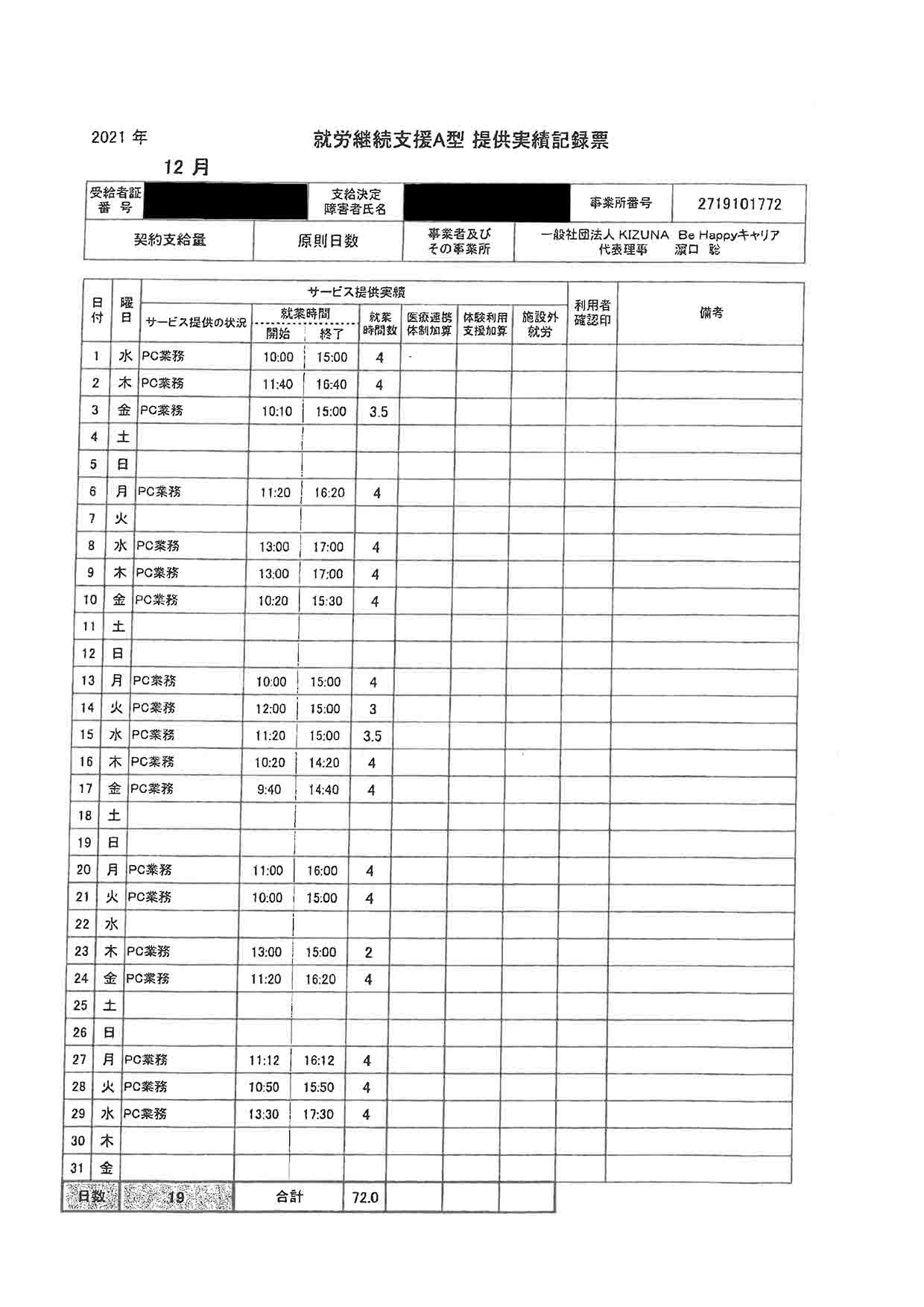 当組合が法人とやり取りする中で出てきた「サービス提供実績記録票」。